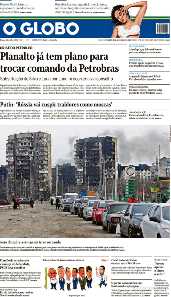 6. Na guerra da Ucrânia, o presidente Putin endureceu contra o que chama de ‘traidores’, que são os russos que se opõem à guerra. Prometeu ‘cuspir traidores como moscas’.