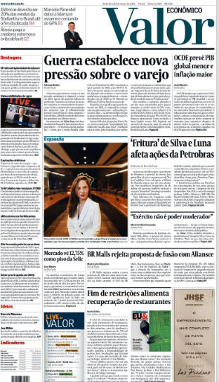 10. O Valor destaca que o setor de varejo vive novos desafios com aumento de preços, problemas de logística e dúvidas do consumidor, além do aumento dos juros.