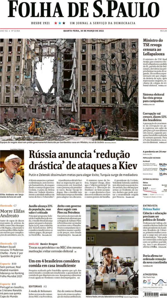 Rússia e Ucrânia anunciaram avanço nas negociações para por fim à guerra na Europa, mas sem maiores detalhes, conforme destacam os jornais na edição desta quarta-feira. Uma dúvida que ficará: a Rússia vai participar da reconstrução da Ucrânia?