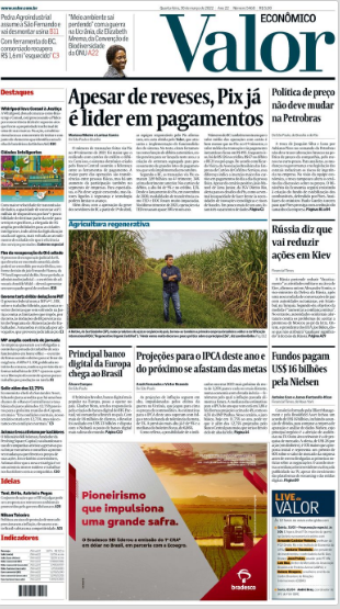 O Valor econômico chama para o sucesso do PIX, a plataforma implantada pelo Banco Central há dois anos e que já é o principal meio de pagamentos no país.