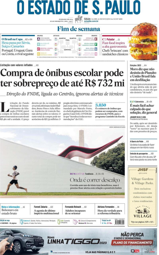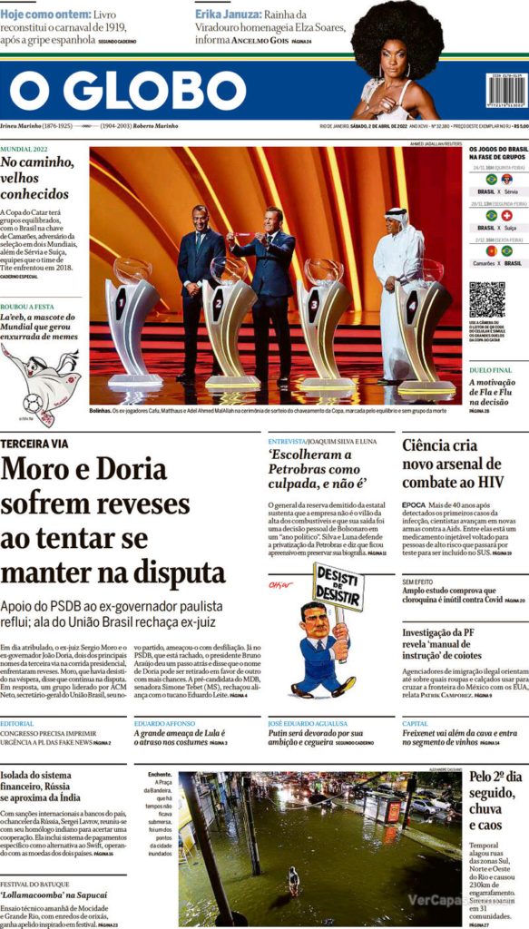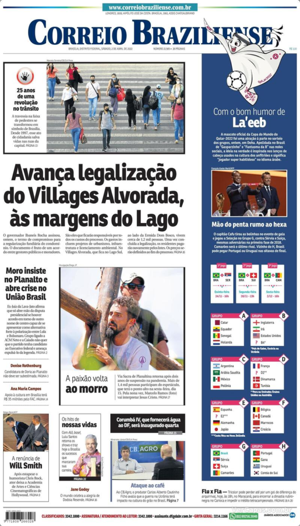 A Copa do Mundo do Futebol no Catar, em julho, começa a ganhar espaço na primeira página dos jornais. O destaque do dia foi a escolha dos primeiros adversários do Brasil, considerados ‘fracos’.