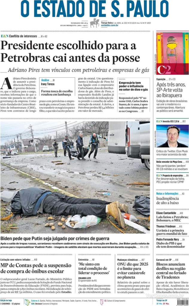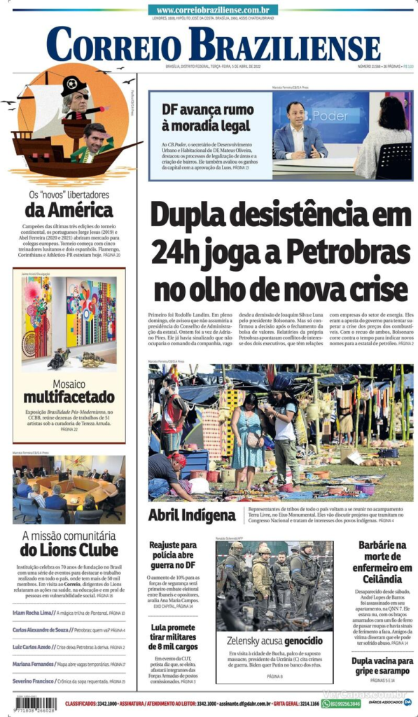 O impasse na indicação do novo comando da Petrobras é o principal assunto dos jornais desta terça-feira. Tanto o indicado para a presidência do Conselho de Administração, Rodolfo Landim, quanto o indicado para a presidência executiva, Adriano Pires, desistiram das indicações.