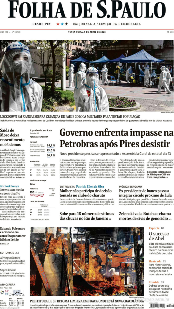 Os jornais publicam o levantamento da força dos novos partidos no Congresso. O PL, de Bolsonaro, foi a legenda que mais ganhou adesões e é a maior força na Câmara. O União Brasil foi o que mais perdeu parlamentares.