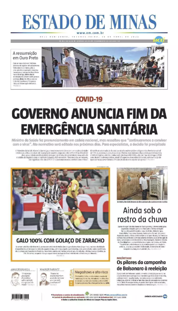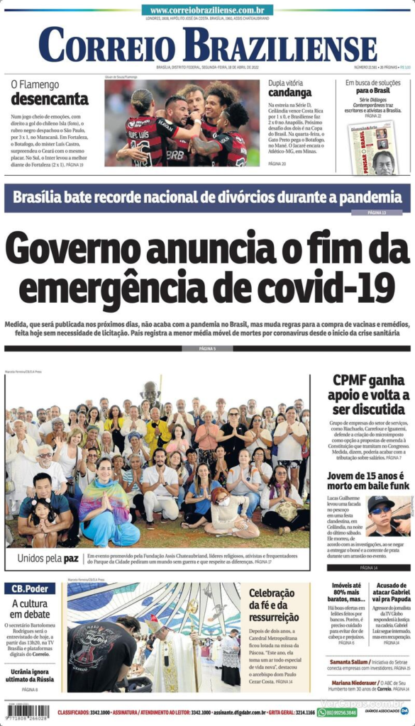 O ministro da Saúde anunciou que o governo vai suspender as medidas de emergência sanitária por conta da covid-19. O assunto está na capa dos principais jornais do país nesta segunda-feira.
