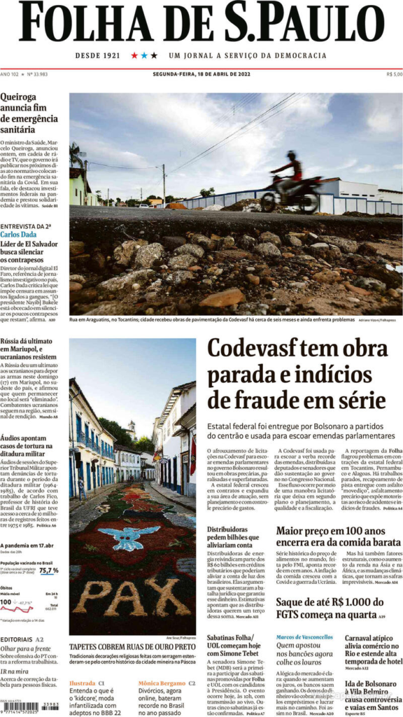 A Folha traz mais informações sobre a Codevasf, estatal criada para buscar soluções para a seca no Nordeste, mas que no governo Bolsonaro ampliou muito as atividades. A Folha informa que há muita obra parada e fraudes em série.