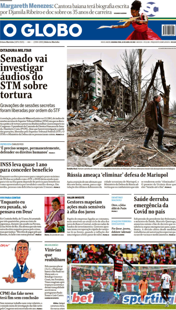 Na economia, a Folha chama a atenção para relatório do FMI, que aponta que os preços dos alimentos estão no mais alto patamar em cem anos. Além da covid e da guerra da Ucrânia, outros fatores estão afetando os preços, como o aumento da população na Ásia e África.
