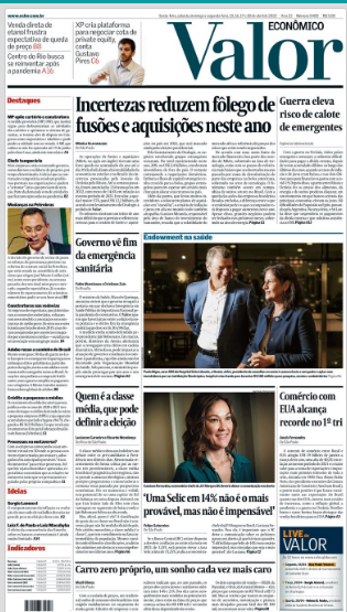 O Valor destaca que o quadro de incerteza no país reduziu as operações de fusões e aquisições de empresas no primeiro trimestre do ano.
