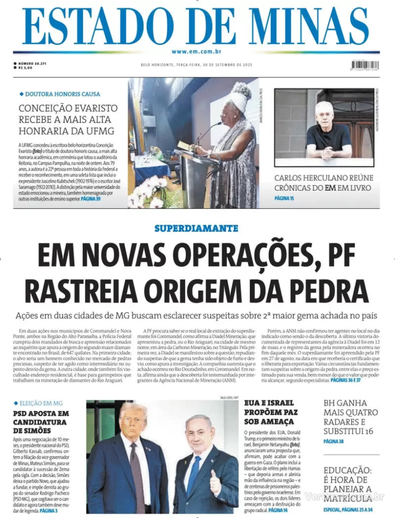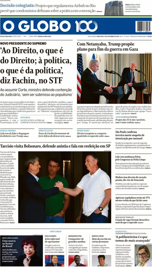 Na economia, os jornais destacam os dados referentes ao mercado de trabalho em agosto. Os dados do Caged mostram desaceleração nas contratações no mercado formal (CLT) no mês passado. O Valor dá como manchete de que a desaceleração da economia prejudicará as contas públicas em 2026.