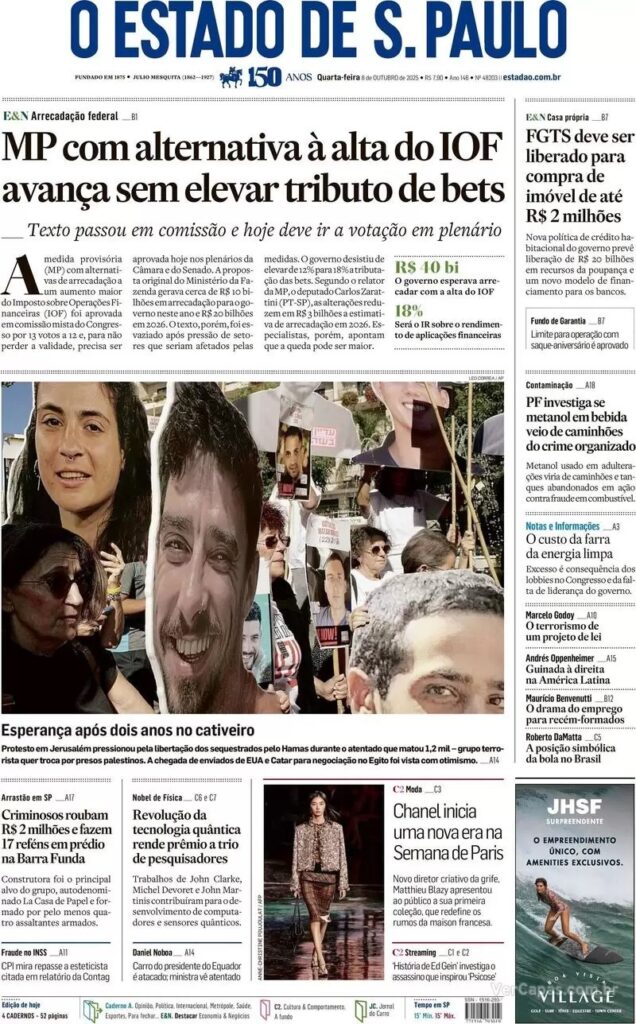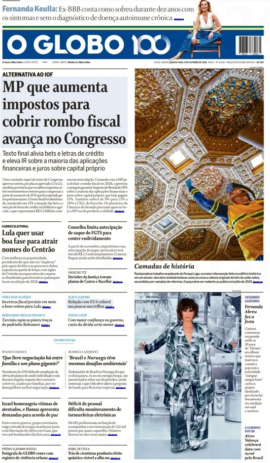 Na política, os jornais destacam o bom momento vivido pelo governo Lula, que quer aproveitar a situação para negociar com o Centrão, visando apoio político. A intenção de Lula é manter os ministros Celso Sabino e Fufuca, do PP e União Brasil, no governo.