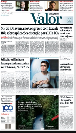 O governo conseguiu uma vitória apertada na votação na Câmara dos Deputados que eleva a alíquota do IOF. Para isso, teve de ceder nas negociações referentes à tributação das apostas eletrônicas (bets). O texto tem de ser aprovado ainda no Senado para evitar que uma Medida Provisória sobre o IOF perca a validade.