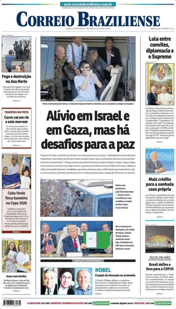 Os jornais desta terça-feira dão destaque às fotos de prisioneiros liberados pelo Hamas por conta do acordo de cessar-fogo na região. Há um alívio generalizado de que foi dado um grande passo para o fim do conflito na região, mas os analistas alertam que ainda há grandes desafios a serem superados.