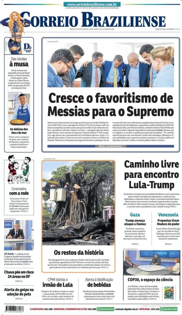 A nomeação do novo integrante do Supremo Tribunal Federal continua merecendo destaque nos jornais. O Estado de S. Paulo publica foto mostrando o presidente Lula orando com pastores evangélicos e o Advogado Geral da União, Jorge Messias, apontado como um dos favoritos ao cargo.