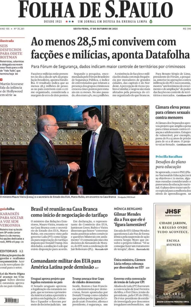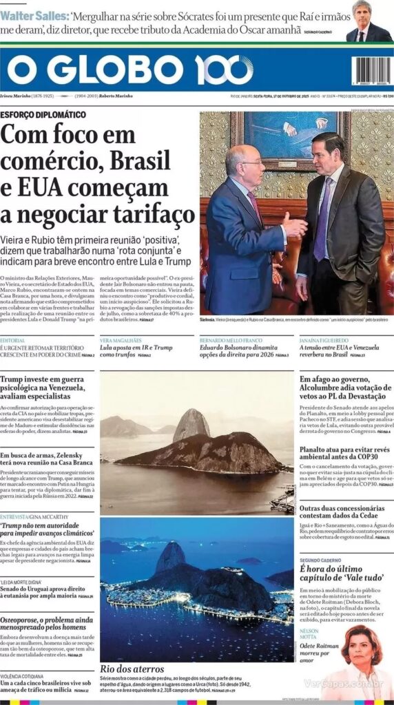 Os jornais desta sexta-feira informam que, além das tarifas, o encontro discutiu as possibilidades de colaboração entre os dois países. Fontes brasileiras informaram que Rubio não mencionou o ex-presidente Jair Bolsonaro nos encontros.