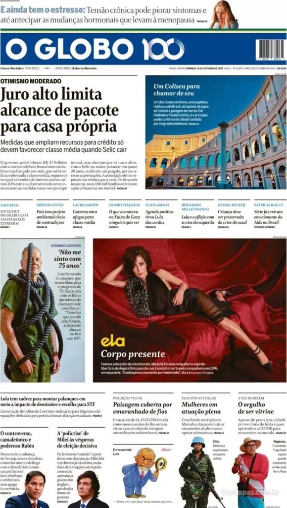 5. Ainda na área internacional, O Globo traz longo reportagem sobre o presidente argentino, Javier Milei. Segundo o jornal, Milei está sob pressão devido à crise econômica, estilo autoritário de gestão e denúncias de corrupção no governo.