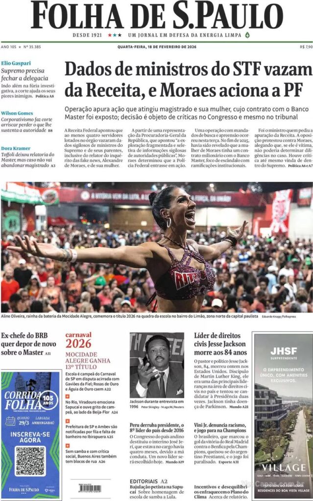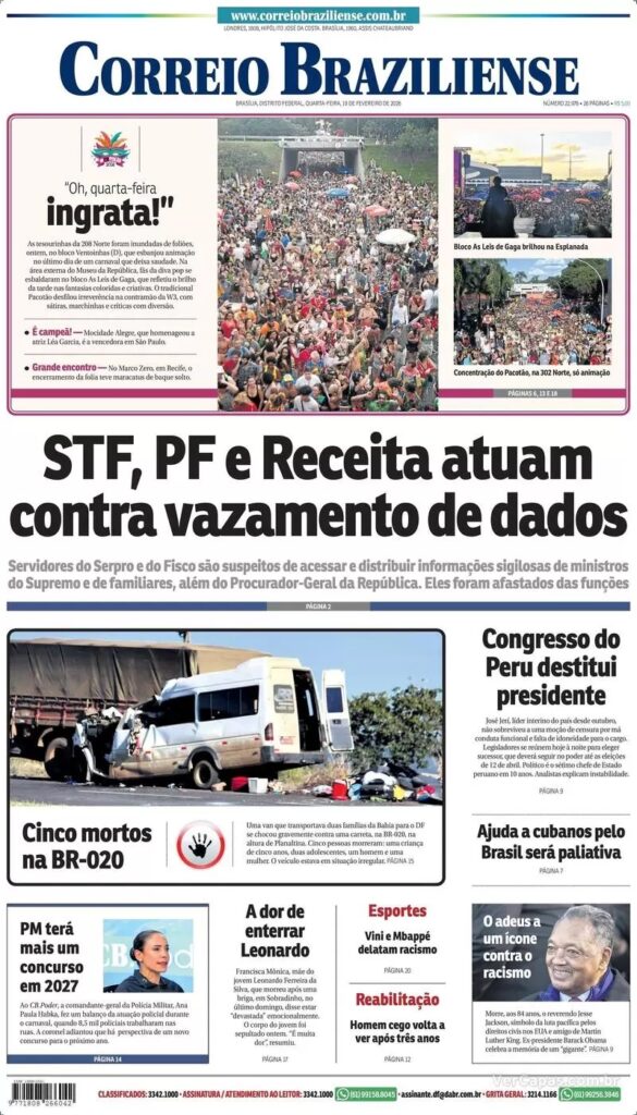 O principal destaque desta quarta-feira é a decisão da Receita Federal de investigar o vazamento de dados envolvendo ministros do STF e seus parentes. A ação da Polícia Federal foi decidida pelo ministro Alexandre de Moraes, do STF.