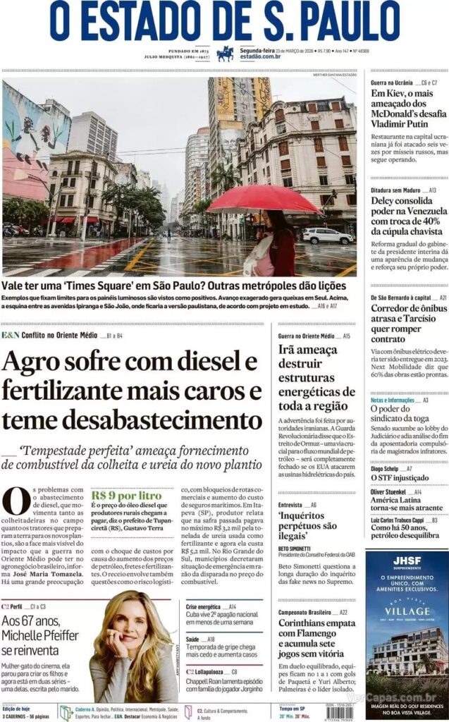 4. O setor de agro, por sua vez, teme aumento nos preços dos fertilizantes, conforme destaca O Estado de S. Paulo. Boa parte dos fertilizantes importados pelo Brasil vem do Oriente Médio e há dificuldades de escoamento dos produtos na região.