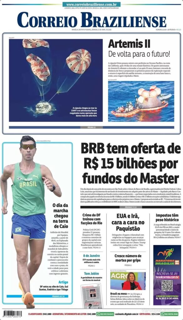 O Correio Braziliense informa que o BRB tem oferta de R$ 15 bilhões por fundos que o banco comprou do Banco Master. A governadora do Distrito Federal, Celina Leão, prevê uma solução para o BRB até o fim deste mês.