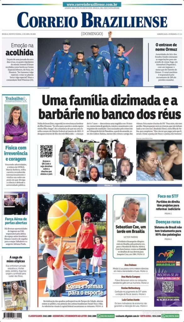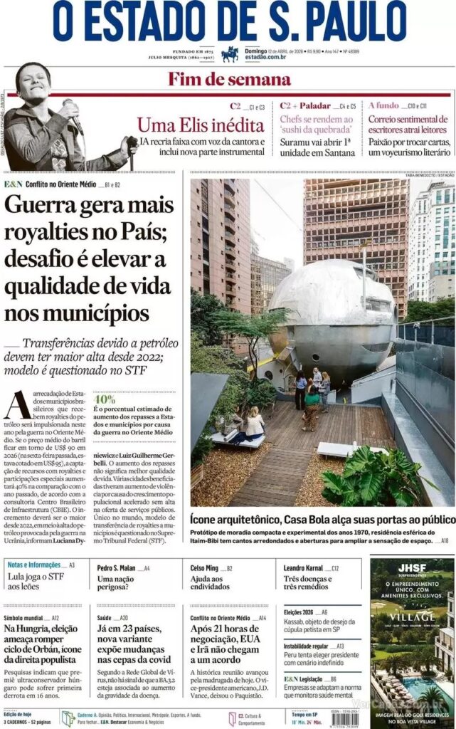 Na área internacional, os jornais registram o início das negociações para o fim do conflito no Oriente Médio, que estão sendo realizadas no Paquistão. O vice-presidente J.D. Vance representa os Estados Unidos nas negociações.
