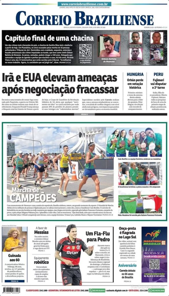 2. Ainda na área internacional, há o destaque para as negociações no Oriente Médio. As reuniões que estão sendo realizadas no Paquistão não chegaram a nenhum acordo e o presidente dos Estados Unidos ameçou fechar o Estreito de Ormuz, o que está pressionando os preços do petróleo no mercado internacional.