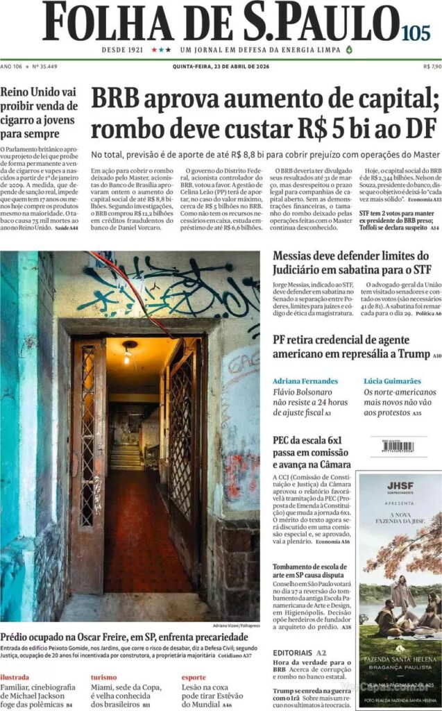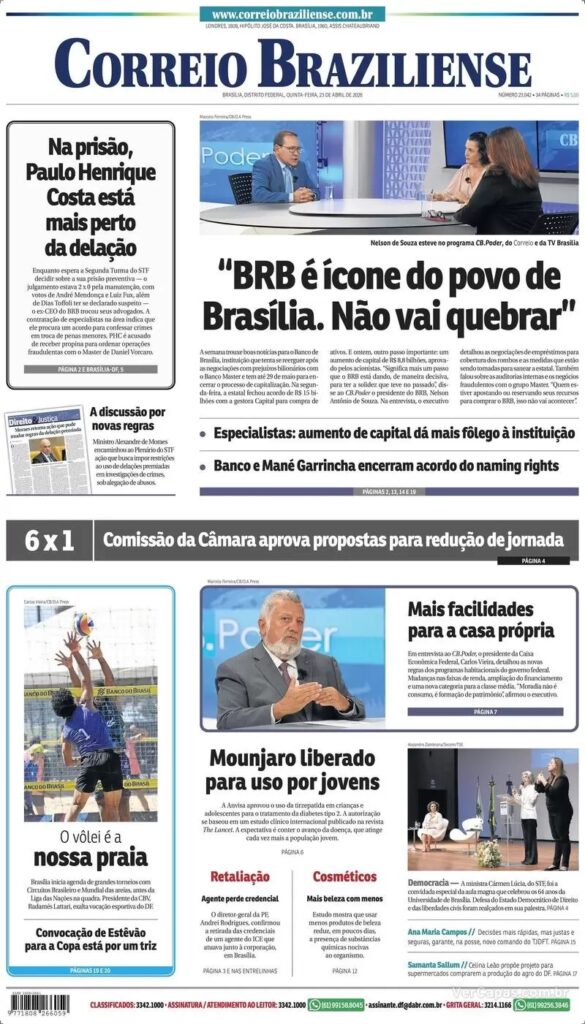 3.  Ainda sobre o BRB, o banco realizou assembléia geral aprovando aumento de capital de R$ 5 bilhões para cobrir o rombo das negociações com o Master. O governo do DF disse que não tem recursos disponíveis e pretende vender ativos.