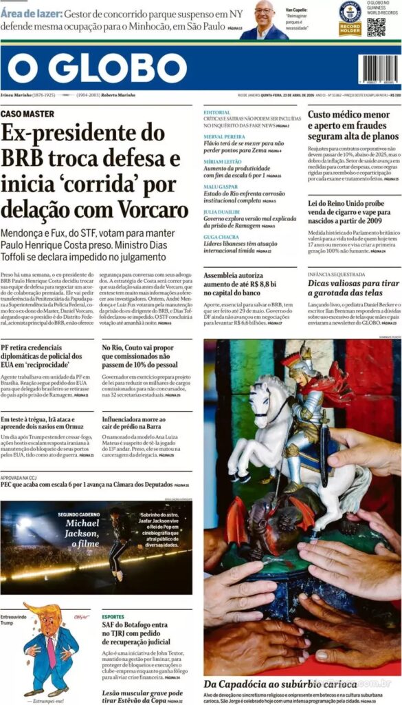 2. Na avaliação dos jornais desta quinta-feira, ele estaria querendo fazer a delação antes de Daniel Vorcaro, ex-controlador do Master, que também estaria negociando uma forma de reduzir a sua pena através desse mecanismo.