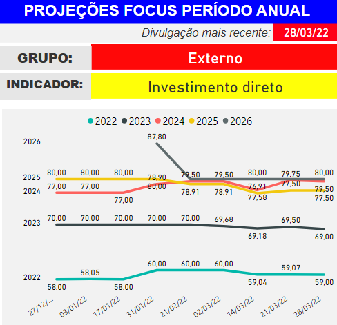 A pesquisa Focus é uma das principais ‘bússolas’ do mercado financeiro brasileiro. O Banco Central faz consultas a mais de 100 consultorias econômicas, bancos e gestores de recursos para aferir as expectativas quanto aos principais indicadores econômicos do país. Veja abaixo um resumo da pesquisa mais recente. Para consulta detalhada, acesse os dados na aba “indicadores“.