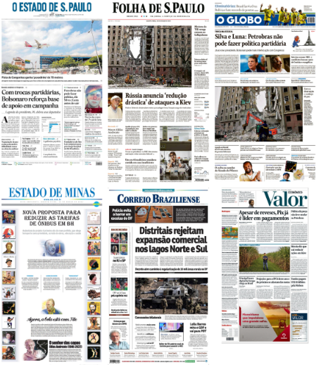 8. A Copa do Mundo do Futebol no Catar, em julho, começa a ganhar espaço na primeira página dos jornais. O destaque do dia foi a escolha dos primeiros adversários do Brasil, considerados ‘fracos’.
